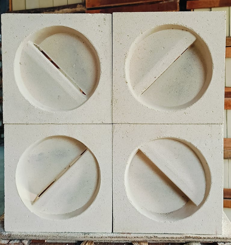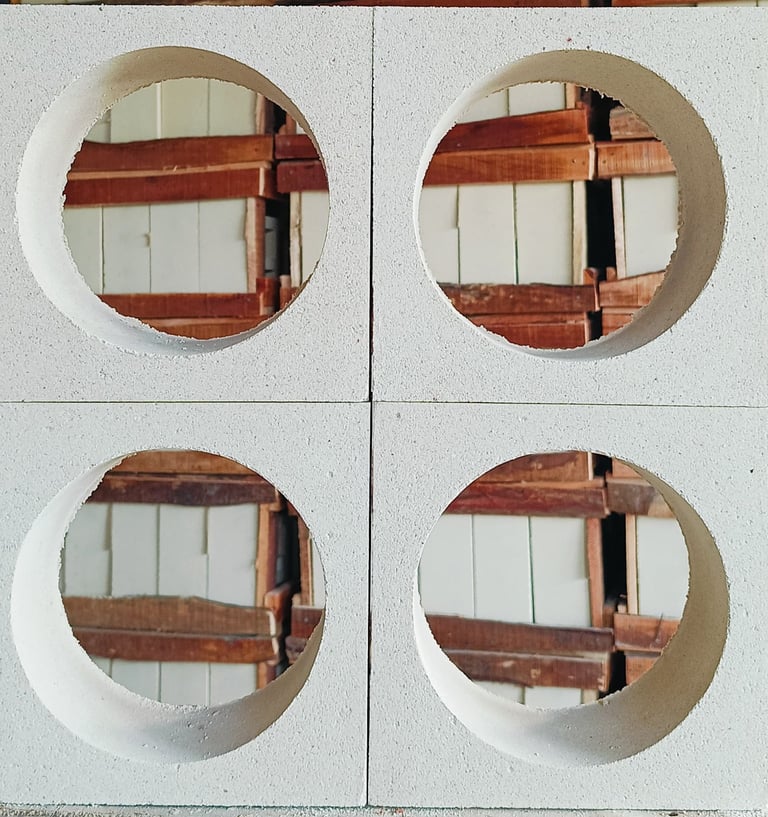 Roster motif Plong dengan lubang terbuka, memberikan sirkulasi udara maksimal dan pencahayaan alami yang optimal.